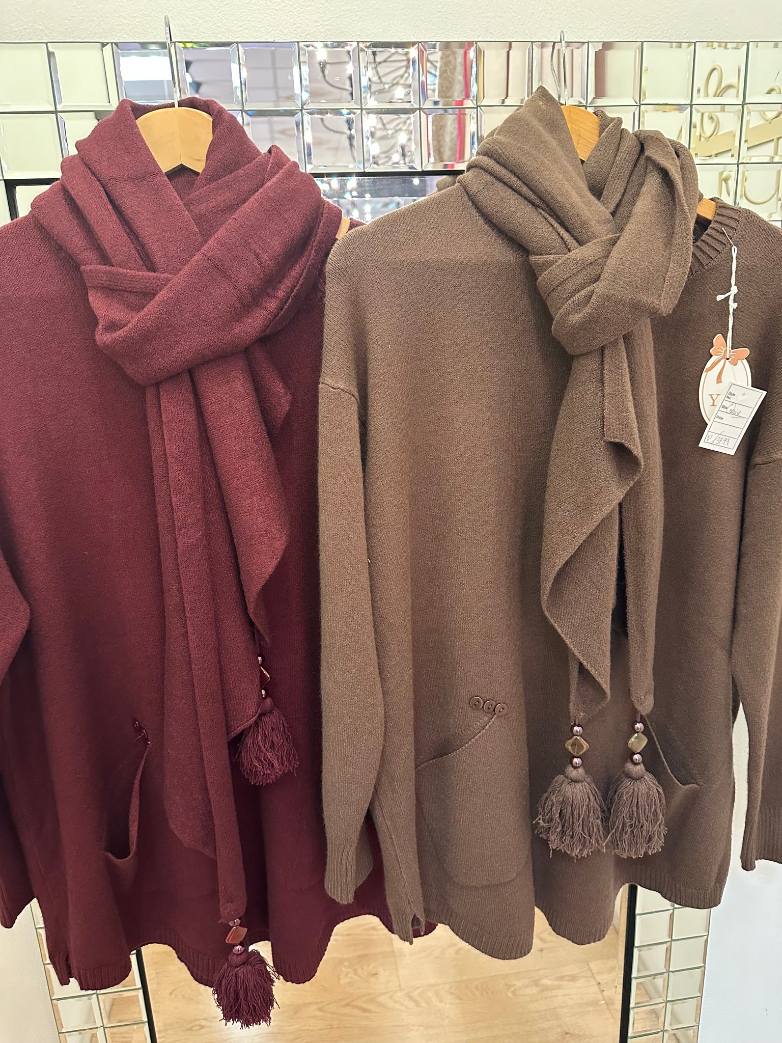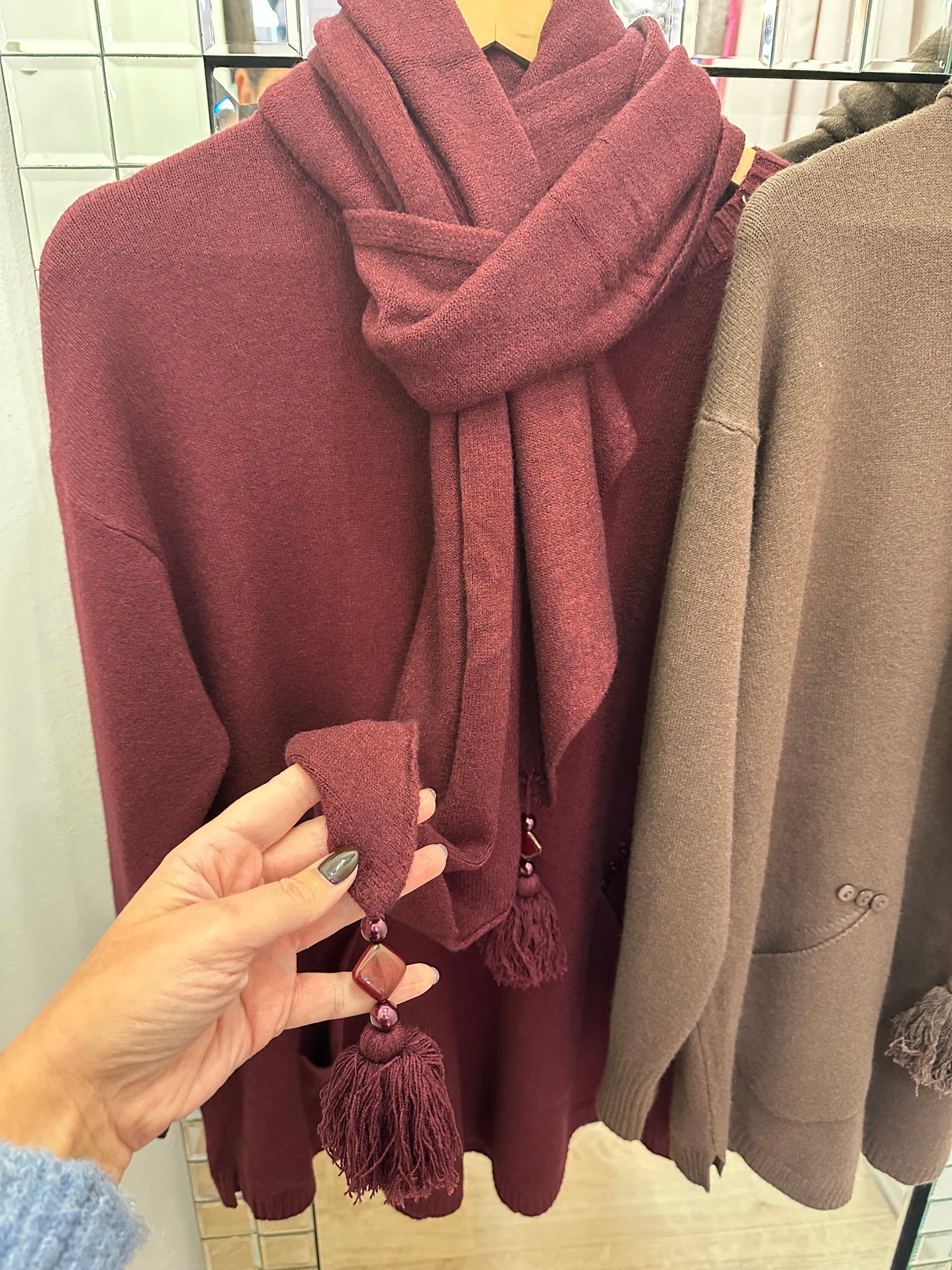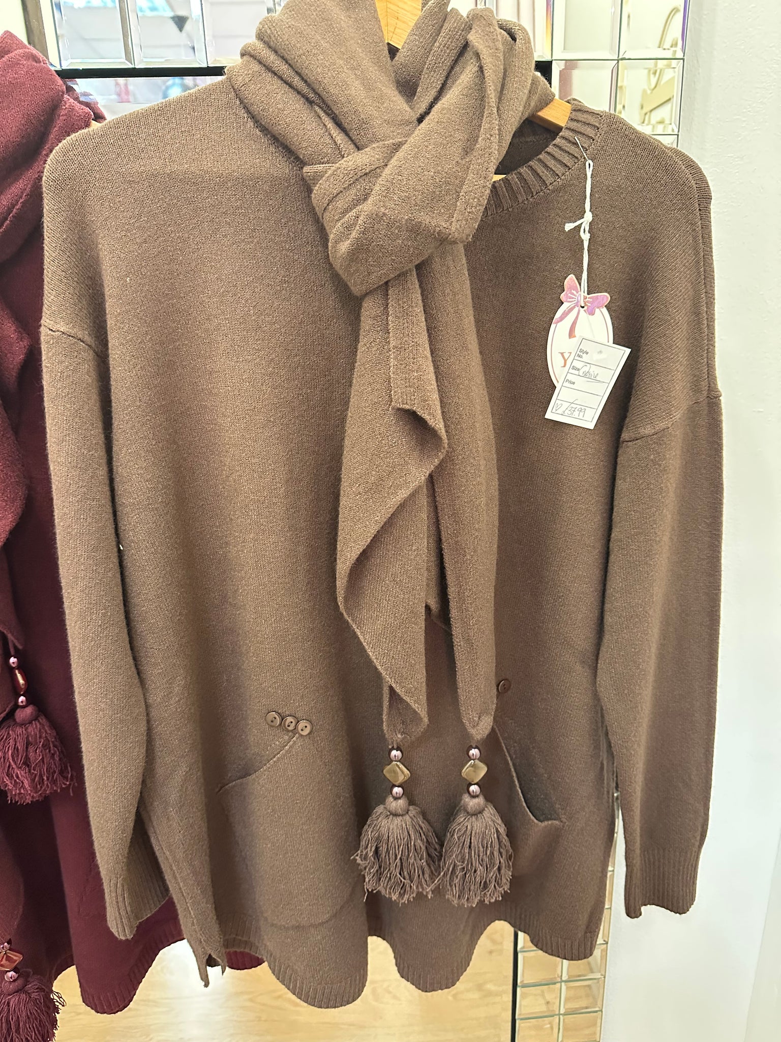 Soft Jumper with matching beaded scarf set. One size fits up to 16.