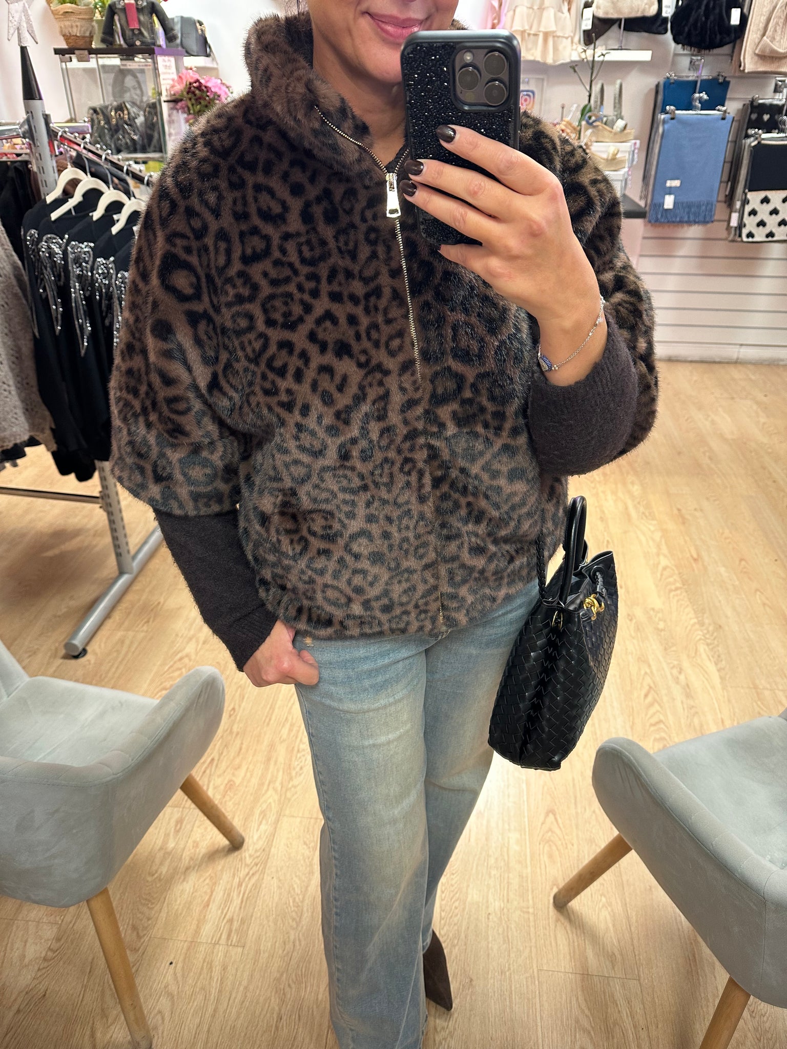 Soft Faux Fur. 3/4 length sleeves. Zip opening lined with pockets. One size fits up to 16.